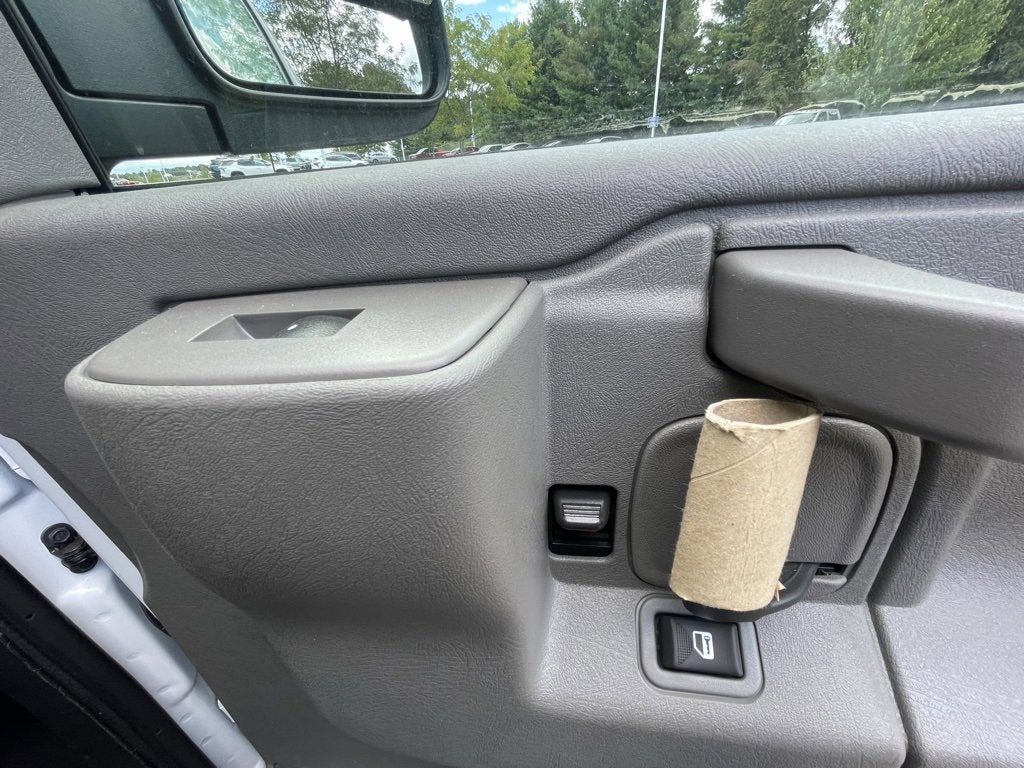 Summit White 2025 Chevrolet Express 2500 Work Van Cargo RWD 8-Speed Automatic with Overdrive 4.3L V6 150 Amp Alternator, 16 x 6.5 Steel Wheels, 2 Speakers, 3.42 Rear Axle Ratio, 4-Wheel Disc Brakes, ABS brakes, Air Conditioning, AM/FM radio, AM/FM Stereo w/MP3 Player, Cruise Control, Delay-off headlights, Driver & Front Passenger High-Back Bucket Seats, Driver Convenience Package, Driver door bin, Driver's Seat Mounted Armrest, Dual front impact airbags, Dual front side impact airbags, Electronic Stability Control, Engine Cover Console w/Swing-Out Storage Bin, Exterior Parking Camera Rear, Fixed Rear Door Window Glass, Fixed Rear Side Door Window Glass, Front anti-roll bar, Front Bucket Seats, Front Reclining High-Back Bucket Seats, Front wheel independent suspension, Full-Length Black Rubberized-Vinyl Floor Covering, Fully automatic headlights, Heated door mirrors, Heavy-Duty Rear Locking Differential, Heavy-Duty Trailering Equipment, Low tire pressure warning, Occupant sensing airbag, Outside Temperature Display, Overhead airbag, Passenger cancellable airbag, Passenger door bin, Passenger seat mounted armrest, Power door mirrors, Power steering, Power windows, Preferred Equipment Group 1WT, Rear & Side Cargo Door Glass, Rear Side Door Glass Window Security Bar, Reclining Front Bucket Seats w/Inboard Armrests, Remote Keyless Entry, Single-Zone Manual Air Conditioning, Tachometer, Theft Alarm Notification, Tilt Steering Wheel, Traction control, Trip computer, Variably intermittent wipers, Vinyl Seat Trim, Voltmeter.