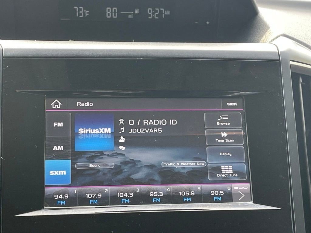 3.70 Axle Ratio, 4 Speakers, 4-Wheel Disc Brakes, ABS brakes, Air Conditioning, AM/FM radio: SiriusXM, Automatic temperature control, Brake assist, Bumpers: body-color, CD player, Cloth Upholstery, Driver door bin, Driver vanity mirror, Dual front impact airbags, Dual front side impact airbags, Electronic Stability Control, Exterior Parking Camera Rear, Four wheel independent suspension, Front anti-roll bar, Front Bucket Seats, Front Center Armrest, Front reading lights, Fully automatic headlights, Illuminated entry, Knee airbag, Low tire pressure warning, Occupant sensing airbag, Outside temperature display, Overhead airbag, Overhead console, Panic alarm, Passenger door bin, Passenger vanity mirror, Power door mirrors, Power steering, Power windows, Radio data system, Radio: Subaru Starlink 6.5 Multimedia Plus System, Rear anti-roll bar, Rear window defroster, Rear window wiper, Remote keyless entry, Security system, Speed control, Speed-sensing steering, Split folding rear seat, STARLINK/Apple CarPlay/Android Auto, Steering wheel mounted audio controls, Tachometer, Telescoping steering wheel, Tilt steering wheel, Traction control, Trip computer, Variably intermittent wipers, Wheels: 17 x 7.0J Steel w/Full Wheel Cover.