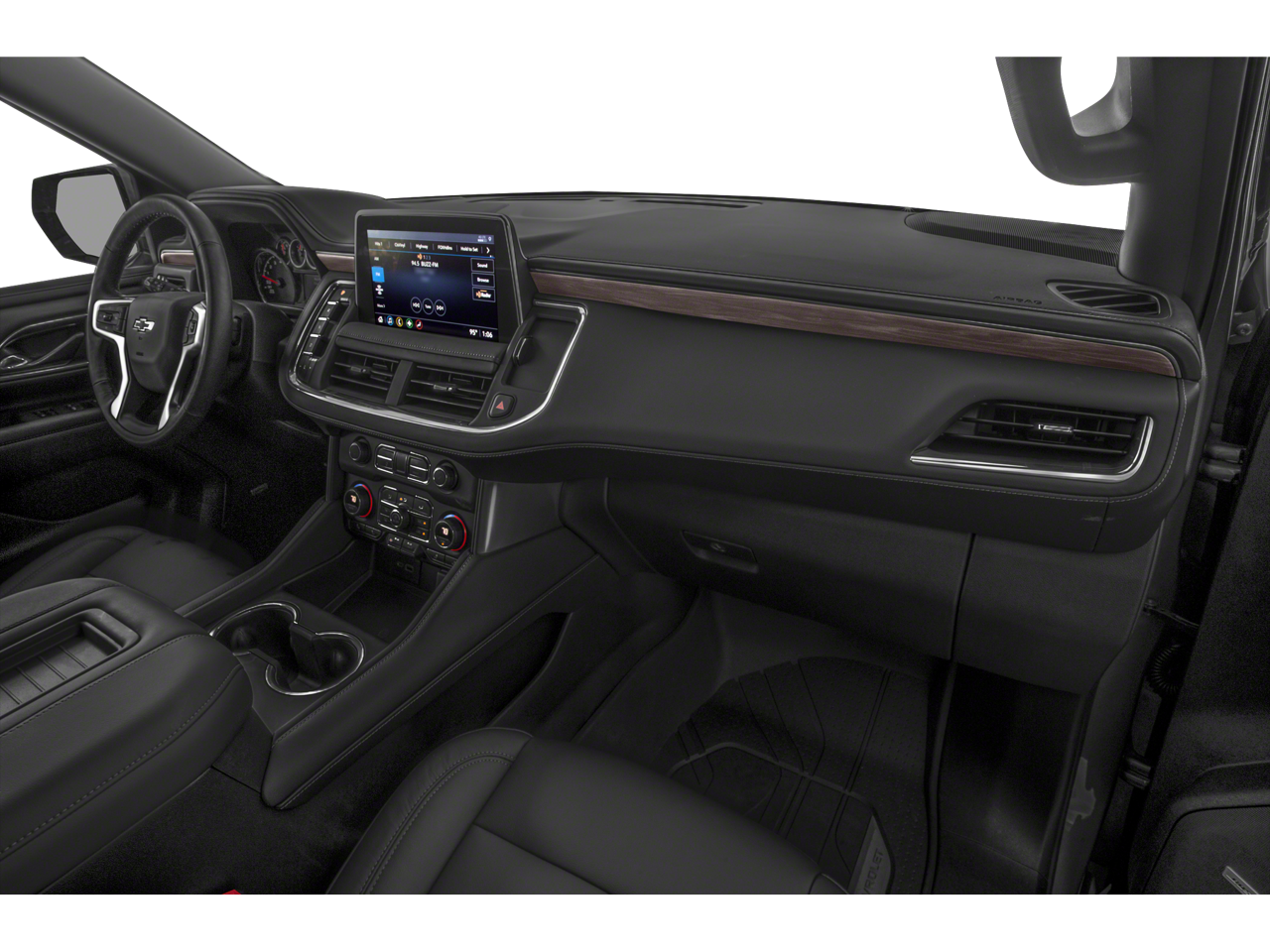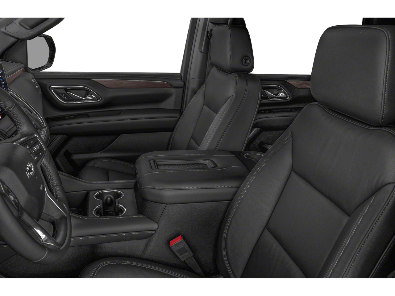 10-Way Power Driver & Passenger Seat Adjusters, 1st & 2nd Row Color-Keyed Carpeted Floor Mats, 2 USB Data Ports, 2-Speed Active Electronic AutoTrac Transfer Case, 2nd Row Manual Bucket Seats, 3.23 Rear Axle Ratio, 3rd row seats: split-bench, 4-Wheel Disc Brakes, 9 Speakers, ABS brakes, Air Conditioning, Alloy wheels, AM/FM radio: SiriusXM with 360L, Apple CarPlay/Android Auto, Auto High-beam Headlights, Auto-Dimming Inside Rear-View Mirror, Auto-dimming Rear-View mirror, Automatic temperature control, Black Tubular Assist Steps, Bose 9-Speaker Stereo Audio System Feature, Brake assist, Bright Front & Rear Door Sill Plates, Bumpers: body-color, Color-Keyed Carpeting Floor Covering, Compass, Delay-off headlights, Driver & Front Outboard Passenger Airbags, Driver door bin, Driver vanity mirror, Dual front impact airbags, Dual front side impact airbags, Electronic Stability Control, Emergency communication system: OnStar and Chevrolet connected services capable, Floor Console w/Storage Area, Four wheel independent suspension, Front anti-roll bar, Front Bucket Seats, Front Center Armrest, Front dual zone A/C, Front High-Approach Angle Fascia, Front High-Back Reclining Bucket Seats, Front reading lights, Fully automatic headlights, Garage door transmitter, Hands-Free Rear Power Programmable Liftgate, HD Radio, Heated door mirrors, Heated Driver & Front Passenger Seats, Heated front seats, Hill Descent Control, Illuminated entry, Infotainment Display, Leather Seat Trim, Leather steering wheel, Leather-Wrapped Steering Wheel, LED Daytime Running Lamps, Low tire pressure warning, Memory seat, Memory Settings for Driver, Occupant sensing airbag, Outside temperature display, Overhead airbag, Overhead console, Panic alarm, Passenger door bin, Passenger vanity mirror, Power door mirrors, Power driver seat, Power Liftgate, Power passenger seat, Power steering, Power windows, Preferred Equipment Group 2Z7, Premium audio system: Chevrolet Infotainment 3, Premium Smooth Ride Suspension, Radio: Chevrolet Infotainment 3 Plus System, Rain sensing wipers, Rear air conditioning, Rear anti-roll bar, Rear reading lights, Rear seat center armrest, Rear window defroster, Rear window wiper, Red Horizontal-Mounted Recovery Hooks, Remote keyless entry, Remote Start, Roof rack: rails only, Security system, SiriusXM Radio w/360L, Speed control, Speed-sensing steering, Split folding rear seat, Spoiler, Steering wheel mounted audio controls, Tachometer, Telescoping steering wheel, Tilt steering wheel, Traction control, Trip computer, Universal Home Remote, Variably intermittent wipers, Voltmeter, Wheels: 20 x 9 Machined Aluminum.