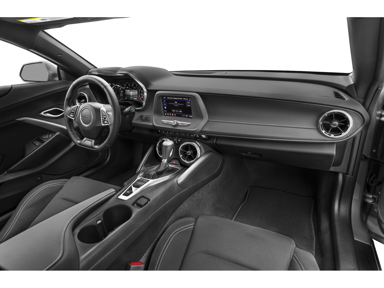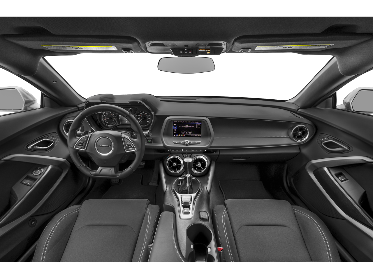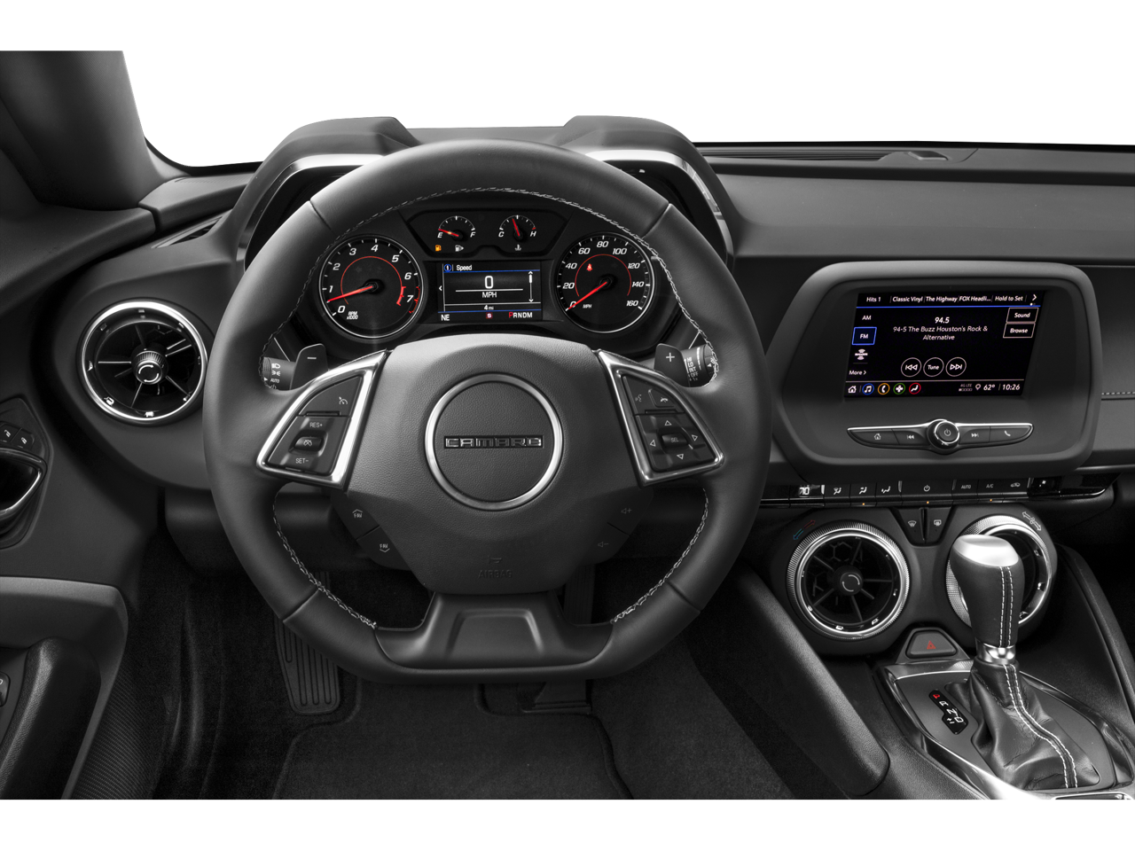 18 Silver-Painted Aluminum Wheels, 2.77 Rear Axle Ratio, 4-Wheel Disc Brakes, 6 Speakers, 6-Speaker Audio System Feature, 6-Way Power Front Passenger Seat Adjuster, 8-Way Power Driver Seat Adjuster, ABS brakes, Air Conditioning, Alloy wheels, AM/FM radio: SiriusXM, Apple CarPlay/Android Auto, Automatic temperature control, Black Camaro Emblem Fender Badge w/Red Outline, Bluetooth® For Phone, Bose Premium 9-Speaker Audio System Feature, Brake assist, Bumpers: body-color, Compass, Dark Tint LED Tail Lamps, Decklid-Mounted Lip Spoiler, Delay-off headlights, Driver door bin, Driver vanity mirror, Dual front impact airbags, Dual front side impact airbags, Dual Mode Exhaust, Electronic Stability Control, Exterior Parking Camera Rear, Four wheel independent suspension, Front anti-roll bar, Front Bucket Seats, Front Center Armrest, Front dual zone A/C, Front reading lights, Front Sport Bucket Seats, Fully automatic headlights, Heated Driver & Front Passenger Seats, Heated front seats, Illuminated entry, Illuminated Sill Plates (LPO), Knee airbag, Leather Shift Knob, Leather-Trimmed Seat Trim, Low tire pressure warning, Lower Grille w/Red Hot Inserts, Occupant sensing airbag, Outside temperature display, Overhead airbag, Paddle-Shift Manual Controls, Panic alarm, Passenger door bin, Passenger vanity mirror, Power door mirrors, Power driver seat, Power passenger seat, Power steering, Power windows, Preferred Equipment Group 2LT, Premium audio system: Chevrolet Infotainment System, Radio data system, Radio: Chevrolet Infotainment 3 Plus System, Radio: Chevrolet Infotainment 3 System, Rear anti-roll bar, Rear window defroster, Red Knee Pads, Red Seat Belt Color, Redline Edition, Redline Edition Graphics, Remote keyless entry, Remote Vehicle Starter System, RS Package, Security system, SiriusXM Radio, SiriusXM w/360L, Speed control, Speed-sensing steering, Steering wheel mounted audio controls, Tachometer, Technology Package, Telescoping steering wheel, Tilt steering wheel, Tire Inflation Kit, Traction control, Trip computer, Variably intermittent wipers, Ventilated Driver & Front Passenger Seats, Ventilated front seats, Voltmeter, Wheels: 20 Black-Painted Aluminum w/Red Accents.
