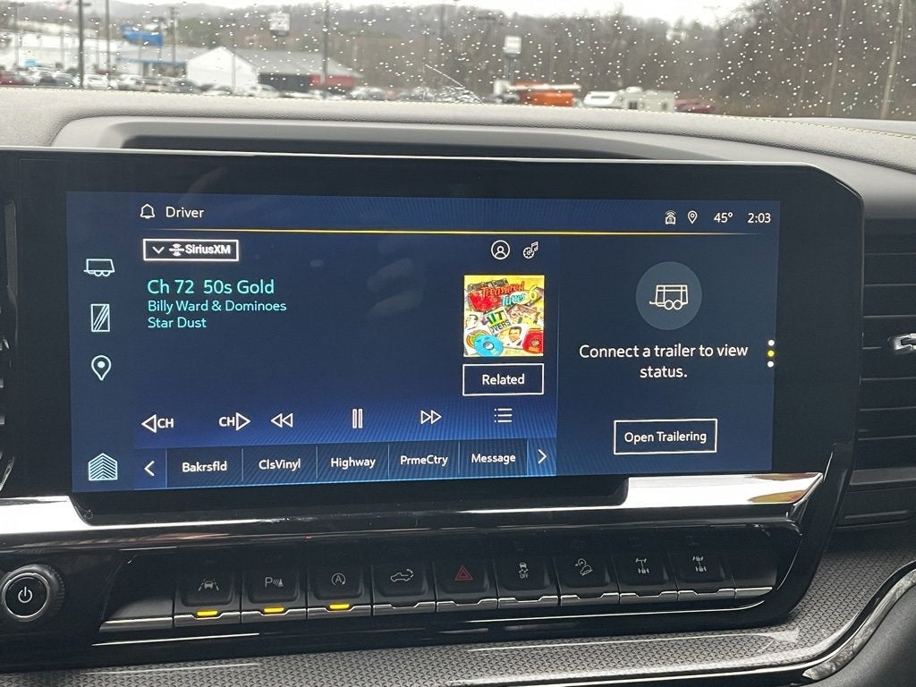 10-Way Power Driver Seat w/Lumbar, 10-Way Power Passenger Seat Adjuster w/Lumbar, 12.3 Multicolor Reconfigurable Digital Display, 120-Volt Bed Mounted Power Outlet, 120-Volt Instrument Panel Power Outlet, 15 Diagonal Multicolor Head-Up Display, 170 Amp Alternator, 2 USB Data Ports, 2nd Row Heated Outboard Seats, 3.23 Rear Axle Ratio, 4-Wheel Disc Brakes, 4 Black Round Assist Steps (LPO), 7 Speakers, ABS brakes, Adaptive Cruise Control, Air Conditioning, All-Weather Floor Liner (LPO), Alloy wheels, AM/FM radio: SiriusXM with 360L, Apple CarPlay/Android Auto, Auto High-beam Headlights, Auto-dimming door mirrors, Auto-Dimming Inside Rear-View Mirror, Auto-dimming Rear-View mirror, Auto-Locking Rear Differential, Automatic Emergency Braking, Automatic temperature control, Bed View Camera, Bluetooth® For Phone, Brake assist, Chevrolet Connected Access Capable, Chevytec Spray-On Black Bedliner, Color-Keyed Carpeting Floor Covering, Compass, Deep-Tinted Glass, Delay-off headlights, Driver door bin, Driver Memory, Driver vanity mirror, Dual Exhaust, Dual front impact airbags, Dual front side impact airbags, Dual Rear USB Ports (Charge Only), Electric Rear-Window Defogger, Electrical Steering Column Lock, Electronic Cruise Control, Electronic Stability Control, Electronic Transmission Range Selector Shifter, EZ Lift Power Lock & Release Tailgate, Floor Mounted Center Console, Following Distance Indicator, Forward Collision Alert, Front anti-roll bar, Front Bucket Seats, Front Center Armrest, Front dual zone A/C, Front fog lights, Front LED Fog Lamps, Front License Plate Kit, Front Pedestrian Braking, Front Rainsensing Wipers, Front reading lights, Front wheel independent suspension, Fully automatic headlights, Garage door transmitter, HD Surround Vision, Heated door mirrors, Heated Driver & Front Outboard Passenger Seats, Heated front seats, Heated rear seats, Heated Steering Wheel, Heated steering wheel, Heavy-Duty Air Filter, High Gloss Black Mirror Caps, Hill Descent Control, Hitch Guidance, Hitch Guidance w/Hitch View, Illuminated entry, Integrated Trailer Brake Controller, IntelliBeam Automatic High Beam On/Off, Keyless Open & Start, Lane Keep Assist w/Lane Departure Warning, LED Cargo Area Lighting, Low tire pressure warning, Manual Tilt/Telescoping Steering Column, Memory seat, Not Equipped w/Steering Column Lock, Occupant sensing airbag, OnStar & Chevrolet Connected Services Capable, Outside Heated Power-Adjustable Mirrors, Outside temperature display, Overhead airbag, Overhead console, Panic alarm, Passenger door bin, Passenger vanity mirror, Perforated Leather Seat Trim, Performance Red Recovery Hooks, Perimeter Lighting, Power door mirrors, Power driver seat, Power Front Passenger Windows w/Express Up/Down, Power Front Windows w/Driver Express Up/Down, Power passenger seat, Power Rear Windows w/Express Down, Power Sliding Rear Window w/Rear Defogger, Power steering, Power Tailgate, Power Tilt & Telescoping Steering Column, Power windows, Preferred Equipment Group 3LT, Premium audio system: Chevrolet Infotainment 3 Premium, Premium Bose 7-Speaker Sound System, Radio data system, Radio: Chevrolet Infotainment 3 Premium System, Rain sensing wipers, Rear Camera Mirror, Rear Cross Traffic Alert-Braking, Rear Park Assist, Rear Parking Sensors, Rear Pedestrian Alert, Rear reading lights, Rear seat center armrest, Rear step bumper, Rear Wheelhouse Liners, Rear window defroster, Remote keyless entry, Remote Vehicle Starter System, Safety Alert Seat, Security system, SiriusXM w/360L, Speed control, Speed-sensing steering, Split folding rear seat, Standard Tailgate, Steering Wheel Audio Controls, Steering wheel mounted audio controls, Tachometer, Technology Package, Telescoping steering wheel, Theft Deterrent System (Unauthorized Entry), Til
