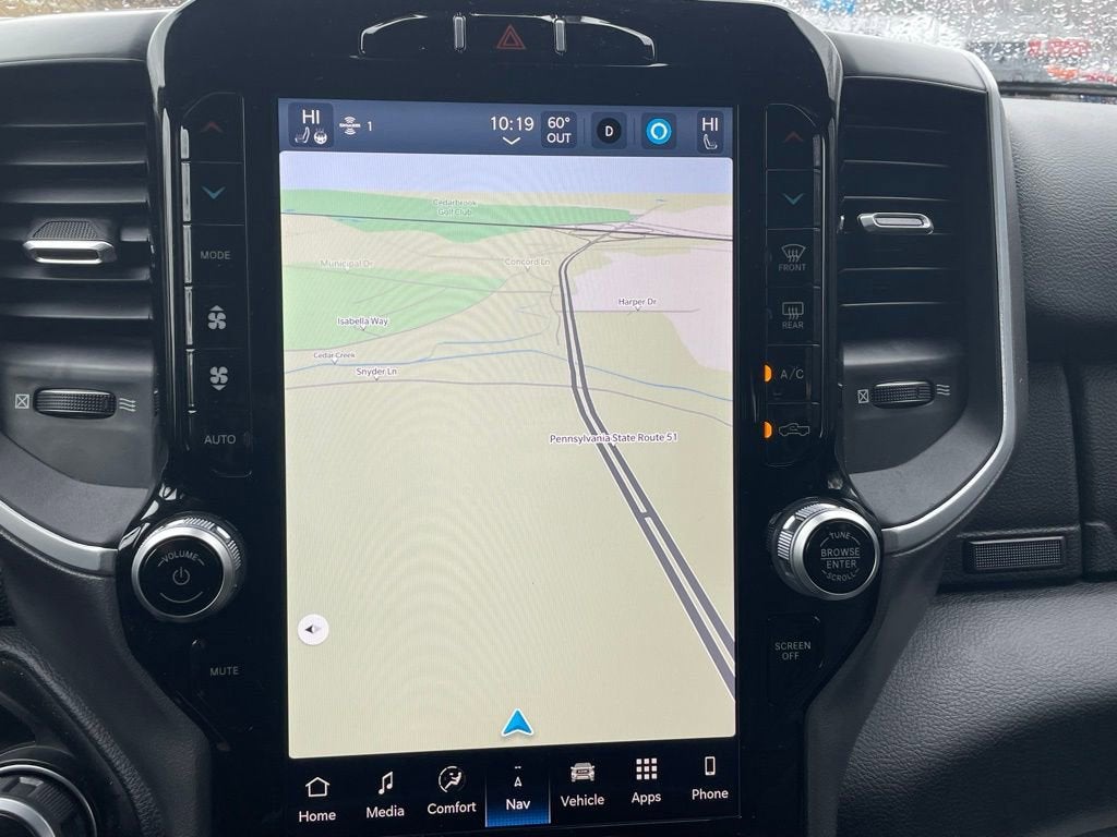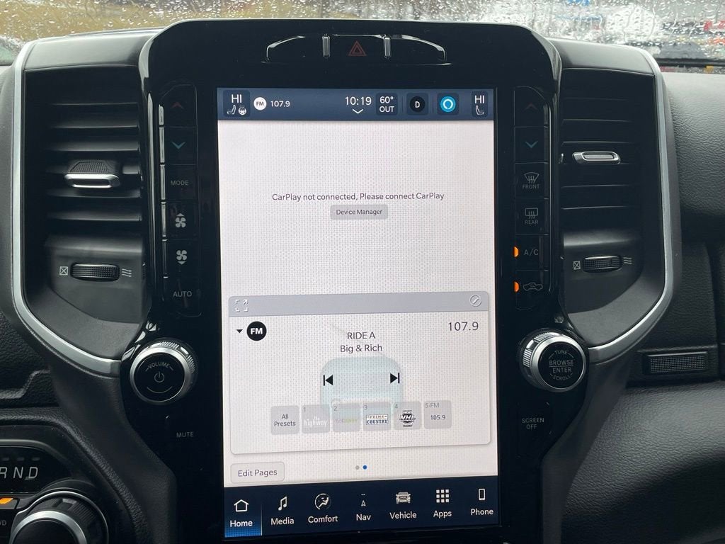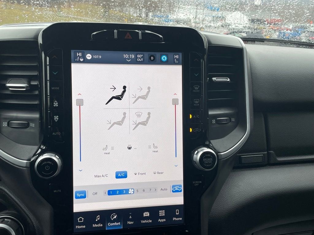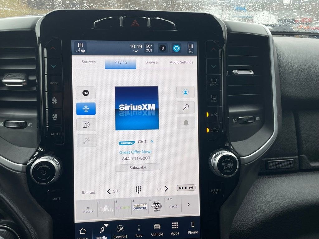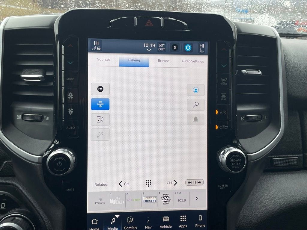 115V Auxiliary Power Outlet, 12 Touchscreen Display, 2nd Row In Floor Storage Bins, 3 Rear Seat Head Restraints, 4 Way Front Headrests, 4-Wheel Disc Brakes, 400W Inverter, 48V Belt Starter Generator, 4G LTE Wi-Fi Hot Spot, 6 Speakers, 9 Amplified Speakers w/Subwoofer, ABS brakes, Accent Color Door Handles, Accent Color Premium Power Mirrors, Air Conditioning, Air Conditioning ATC w/Dual Zone Control, All R1 High Radios, All Radio Equipped Vehicles, Alloy wheels, AM/FM radio, Anti-Spin Differential Rear Axle, Apple CarPlay, Auto-Dimming Exterior Driver Mirror, Auto-Dimming Rear-View Mirror, Bed Utility Group, Big Horn Badge, Big Horn Level B Equipment Group, Black Exterior Mirrors, Black Exterior Truck Badging, Black Headlamp Bezels, Black Interior Accents, Black Painted Exterior Mirrors Caps, Black Premium Power Mirrors, Blind Spot & Cross Path Detection, Body Color Front Bumper, Body Color Rear Bumper w/Step Pads, Brake assist, Bucket Seats, Bumpers: chrome, Center Console Parts Module, Class IV Receiver Hitch, Cloth Bench Seat, Cluster 7.0 TFT Color Display, Compass, Connected Travel & Traffic Services, Connectivity - US/Canada, Convex Wide-Angle Exterior Mirror Insert, Delay-off headlights, Deluxe Cloth Bucket Seats, Disassociated Touchscreen Display, Driver door bin, Dual Exhaust w/Black Tips, Dual front impact airbags, Dual front side impact airbags, Electronic Stability Control, Emergency communication system: SiriusXM Guardian, Exterior Mirrors Courtesy Lamps, Exterior Mirrors w/Heating Element, Exterior Mirrors w/Supplemental Signals, For Details, Visit DriveUconnect.com, For More Info, Call 800-643-2112, Front anti-roll bar, Front Center Armrest w/Storage, Front Fog Lamps, Front License Plate Bracket, Front reading lights, Front Seat Back Map Pockets, Front wheel independent suspension, Full Length Floor Console, Fully automatic headlights, Global Telematics Box Module (TBM), Glove Box Lamp, Google Android Auto, GPS Antenna Input, GPS Navigation, HD Radio, Heated door mirrors, Heated Front Seats, Heated Steering Wheel, Illuminated entry, Integrated Center Stack Radio, Integrated Voice Command w/Bluetooth®, Leather steering wheel, LED Footwell Lighting, LED Taillamps, Low tire pressure warning, Manual Adjust 4-Way Front Passenger Seat, Media Hub w/2 Charge Only USBs, MOPAR 4 Adjustable Cargo Tie-Down Hooks, MOPAR Deployable Bed Step, MOPAR Front & Rear Rubber Floor Mats, MOPAR Spray In Bedliner, Night Edition, Occupant sensing airbag, Outside temperature display, Overhead airbag, Overhead console, Panic alarm, ParkSense Front/Rear Park Assist w/Stop, ParkView Rear Back-Up Camera, Passenger door bin, Passenger vanity mirror, Pick-Up Box Lighting, Power 2-Way Driver Lumbar Adjust, Power 8-Way Driver Seat, Power Adjustable Pedals, Power door mirrors, Power steering, Power windows, Power-Folding Mirrors, Quick Order Package 23Z Big Horn, Radio data system, Radio: Uconnect 3 w/5 Display, Radio: Uconnect 5 Nav w/12.0 Display, RAM Grille Badge - Black, RAM Grille Badge - Chrome, Rear 60/40 Folding Seat, Rear anti-roll bar, Rear Center Armrest, Rear Dome w/On/Off Switch Lamp, Rear Power Sliding Window, Rear seat center armrest, Rear step bumper, Rear Wheelhouse Liners, Rear Window Defroster, Remote keyless entry, Remote Start System, Security Alarm, SiriusXM Radio Service, SiriusXM Satellite Radio, SiriusXM w/360L, Speed control, Split folding rear seat, Steering wheel mounted audio controls, Sun Visors w/Illuminated Vanity Mirrors, Tachometer, Telescoping steering wheel, Tilt steering wheel, Traction control, Trip computer, Universal Garage Door Opener, USB Host Flip, Variably intermittent wipers, Voltmeter, Wheels: 18 x 8 Cast-Aluminum Painted, Wheels: 20 x 9.0 Premium Paint/Polished.