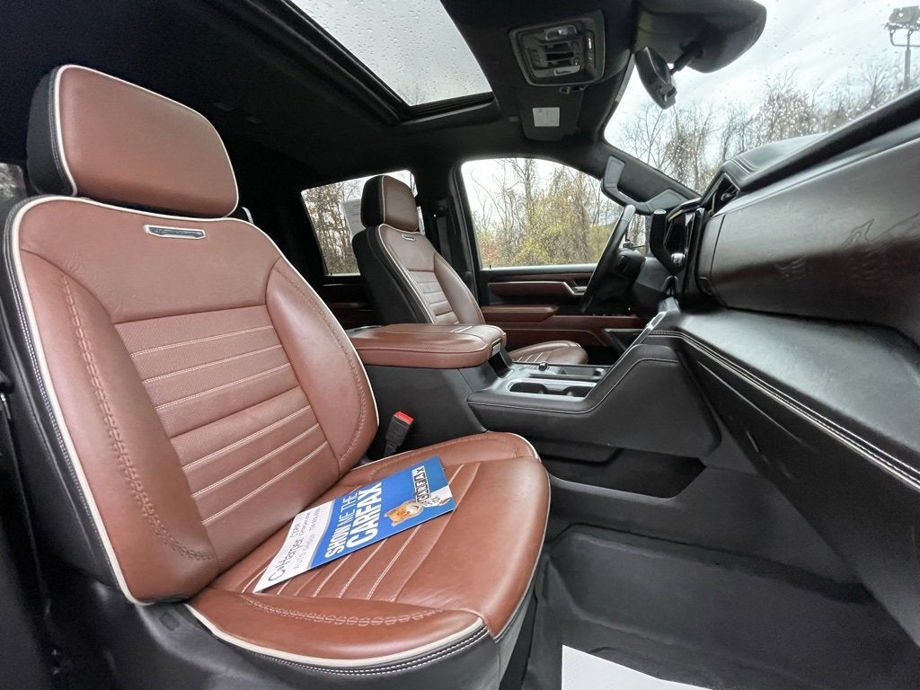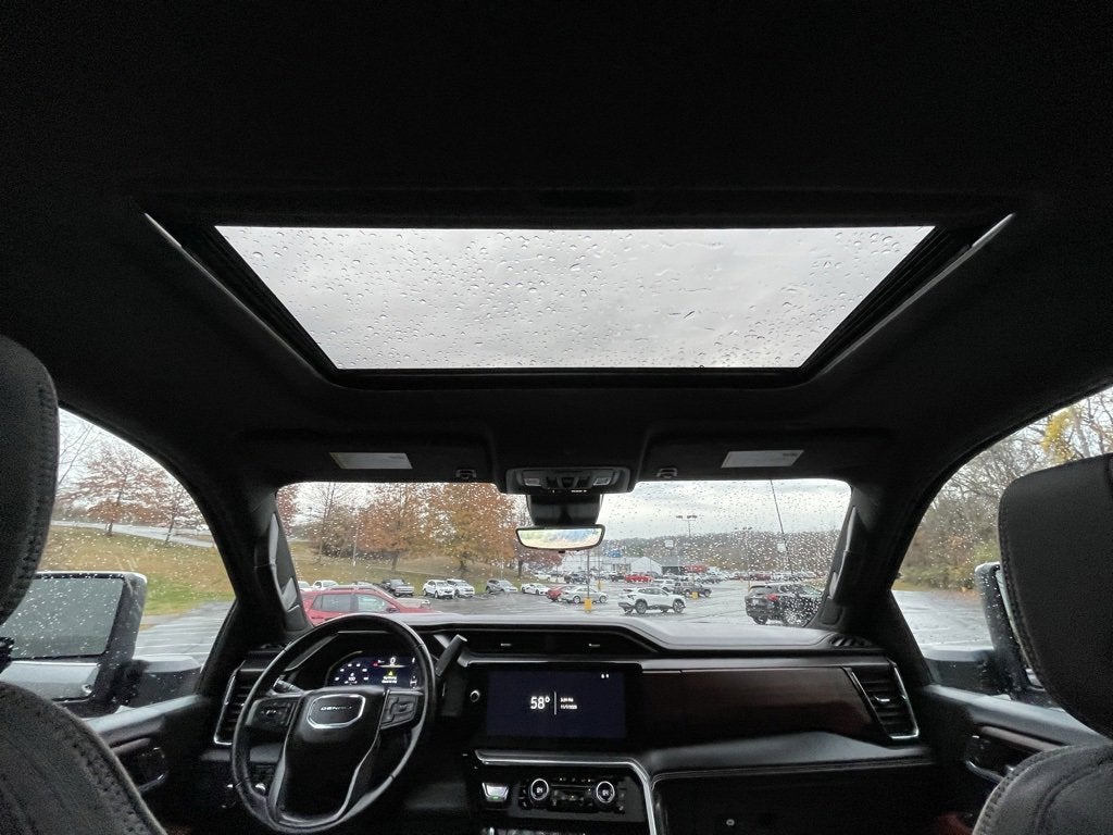 12 Speakers, 120-Volt Bed Mounted Power Outlet, 120-Volt Instrument Panel Power Outlet, 16-Way Power Driver Seat Adjuster w/Lumbar, 16-Way Power Passenger Seat Adjuster w/Lumbar, 2 Charge-Only Rear USB Ports, 2 Charge/Data USB Ports Inside Center Console, 2 USB Ports, 2-Speed Active Transfer Case, 220-Amp Alternator, 3.42 Axle Ratio, 4-Wheel Disc Brakes, 5th Wheel & Gooseneck Trailer Wiring Provisions, ABS brakes, Air Conditioning, All-Weather Floor Liners (LPO), Alloy wheels, AM/FM radio: SiriusXM with 360L, Apple CarPlay/Android Auto, Auto High-beam Headlights, Auto-dimming door mirrors, Auto-dimming Rear-View mirror, Automatic Emergency Braking, Automatic temperature control, Bed View Camera w/2 Trailer Camera Provisions, Black Front & Rear Molded Splash Guards (LPO), Block heater, Bose Premium Series 12-Speaker System, Brake assist, Buckle to Drive, Bumpers: body-color, Compass, Deep-Tinted Glass, Delay-off headlights, Driver door bin, Driver Memory, Driver vanity mirror, Dual front impact airbags, Dual front side impact airbags, Dual Heavy-Duty 70 Amp Battery, Electric Rear-Window Defogger, Electronic Stability Control, Emergency communication system: OnStar and GMC connected services capable, Floor-Mounted Center Console, Following Distance Indicator, Forward Collision Alert, Front anti-roll bar, Front Bucket Seats, Front Center Armrest, Front dual zone A/C, Front fog lights, Front Pedestrian Braking, Front Rain-Sensing Wipers, Front reading lights, Front wheel independent suspension, Full Grain Leather Seat Trim, Fully automatic headlights, Garage door transmitter, Genuine wood dashboard insert, Genuine wood door panel insert, GMC Connected Access Capable, HD Surround Vision, Heads-Up Display, Heated 2nd Row Outboard Seats, Heated door mirrors, Heated Driver & Front Outboard Passenger Seats, Heated front seats, Heated rear seats, Heated steering wheel, High Idle Switch, Hill Descent Control, Hitch Guidance w/Hitch View, Illuminated entry, In-Vehicle Trailering System App, Inside Rearview Auto-Dimming Rear Camera Mirror, Integrated Trailer Brake Controller, IntelliBeam Automatic High Beam On/Off, Keyless Open & Start, Lane Departure Warning System, Leather steering wheel, LED Cargo Area Lighting, LED Smoked Amber Roof Marker Lamps, Low tire pressure warning, Manual Tilt-Wheel/Telescoping Steering Column, Memory seat, Multicolor 15 Diagonal Head-Up Display, Occupant sensing airbag, Off-Road Suspension, OnStar & GMC Connected Services Capable, Outside temperature display, Overhead airbag, Overhead console, Panic alarm, Passenger door bin, Passenger vanity mirror, Pickup Box, Power door mirrors, Power driver seat, Power Front Passenger Windows w/Express Up/Down, Power moonroof, Power passenger seat, Power Sliding Rear Window w/Defogger, Power steering, Power Sunroof, Power windows, Preferred Equipment Group 5SB, Premium audio system: Premium GMC Infotainment System, Push Button Start, Radio: AM/FM w/Premium GMC Infotainment System, Rain sensing wipers, Rear Cross Traffic Alert, Rear reading lights, Rear seat center armrest, Rear step bumper, Rear Wheelhouse Liners, Rear window defroster, Remote keyless entry, Remote Vehicle Starter System, Safety Alert Seat, Security system, Signature Denali Grille in Vadar Chrome, SiriusXM w/360L, Snow Plow Prep/Camper Package, Speed control, Speed-sensing steering, Split folding rear seat, Spray-On Bedliner w/Denali Logo, Steering Wheel Audio Controls, Steering wheel mounted audio controls, Tachometer, Technology Package, Telescoping steering wheel, Tilt steering wheel, Traction control, Trailer Cam Provisions & Trailer Viewing Software, Trailer Side Blind Zone Alert, Trailer Tire Pressure Monitor Sensors, Trip computer, Turn