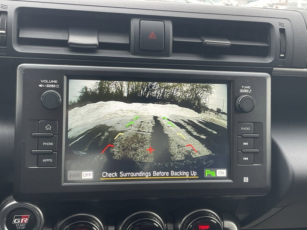 2-Stage Heated Sport Front Seats, 4-Wheel Disc Brakes, 8 Speakers, ABS brakes, Air Conditioning, Alloy wheels, AM/FM radio: SiriusXM, Apple CarPlay/Android Auto, Auto High-beam Headlights, Automatic temperature control, Brake assist, Bumpers: body-color, Delay-off headlights, Driver door bin, Driver vanity mirror, Dual front impact airbags, Dual front side impact airbags, Electronic Stability Control, Emergency communication system: Safety Connect (1-year trial), Exterior Parking Camera Rear, Four wheel independent suspension, Front anti-roll bar, Front Bucket Seats, Front dual zone A/C, Front reading lights, Fully automatic headlights, Heated door mirrors, Heated front seats, Illuminated entry, Knee airbag, Leather Shift Knob, Leather steering wheel, Low tire pressure warning, Occupant sensing airbag, Outside temperature display, Overhead airbag, Panic alarm, Passenger door bin, Passenger vanity mirror, Power door mirrors, Power steering, Power windows, Radio data system, Radio: GR86 Audio, Rear anti-roll bar, Rear Parking Sensors, Rear window defroster, Remote keyless entry, Security system, Speed control, Spoiler, Steering wheel mounted audio controls, Tachometer, Telescoping steering wheel, Tilt steering wheel, Traction control, Trip computer, Ultrasuede Seat Trim w/Leather Bolsters, Variably intermittent wipers, Wheels: 18 Matte-Black-Painted Alloy.