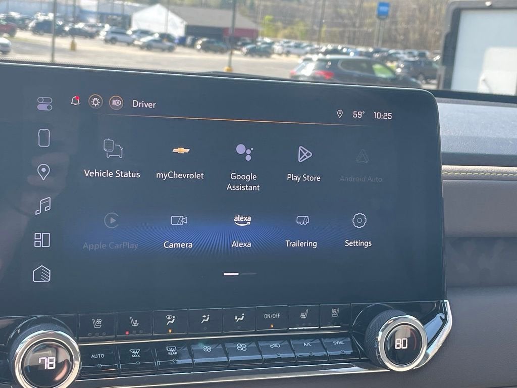 1st & 2nd Row All-Weather Floor Liner (LPO), 3.42 Rear Axle Ratio, 4-Way Manual Passenger Seat Adjuster, 4-Wheel Disc Brakes, 6 Speakers, 6-Speaker Audio System Feature, 8-Way Power Driver Seat Adjuster, ABS brakes, Adaptive Cruise Control, Air Conditioning, Alloy wheels, AM/FM radio: SiriusXM, Apple CarPlay/Android Auto, Auto High-beam Headlights, Auto-dimming Rear-View mirror, Automatic Emergency Braking, Automatic temperature control, Bose Premium 7-Speaker Audio System Feature, Brake assist, Chevy Safety Assist, Compass, Delay-off headlights, Driver & Front Passenger Ventilated Seats, Driver door bin, Driver Memory Settings, Driver Seatback Map Pocket, Driver vanity mirror, Dual front impact airbags, Dual front side impact airbags, Electronic Stability Control, Emergency communication system: OnStar, Following Distance Indicator, Forward Collision Alert, Front anti-roll bar, Front Bucket Seats, Front Center Armrest, Front dual zone A/C, Front fog lights, Front Passenger Seatback Map Pocket, Front Pedestrian & Bicyclist Braking, Front reading lights, Front wheel independent suspension, HD Surround Vision, Heated door mirrors, Heated Driver & Front Passenger Seats, Heated front seats, Heated steering wheel, Illuminated entry, IntelliBeam Automatic High Beam On/Off, Lane Keep Assist w/Lane Departure Warning, Low tire pressure warning, Memory seat, Navigation System, Occupant sensing airbag, Outside temperature display, Overhead airbag, Overhead console, Panic alarm, Passenger door bin, Passenger vanity mirror, Perforated Leather-Appointed Seat Trim, Power door mirrors, Power Driver Lumbar Control Seat Adjuster, Power driver seat, Power steering, Power windows, Preferred Equipment Group 4ZR, Radio data system, Radio: 11.3 Diagonal Advanced Color LCD Display, Rear Pedestrian Alert, Rear reading lights, Rear seat center armrest, Rear step bumper, Rear window defroster, Remote keyless entry, Security system, SiriusXM Trial Subscription, Speed control, Speed-sensing steering, Split folding rear seat, Steering Wheel Mounted Audio Controls, Steering wheel mounted audio controls, Tachometer, Technology Package, Telescoping steering wheel, Tilt steering wheel, Traction control, Trip computer, Variably intermittent wipers, Ventilated front seats, Wheels: 17 x 8 Graphite & Oxide Gold Aluminum, Wireless Phone Projection, ZR2 Off-Road Package.
